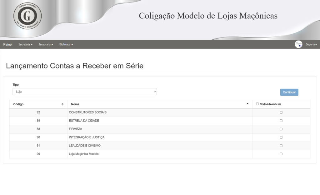Cada Loja associada terá acesso a um painel contendo várias informações úteis, lista de aniversariantes, agenda e informativos da Associação/Coligação, além de um calendário de eventos. Ele poderá ainda incluir e alterar os dados cadastrais de seus Irmãos e Candidatos, assim como atualizar suas informações da própria Loja e consultar sua situação na tesouraria.